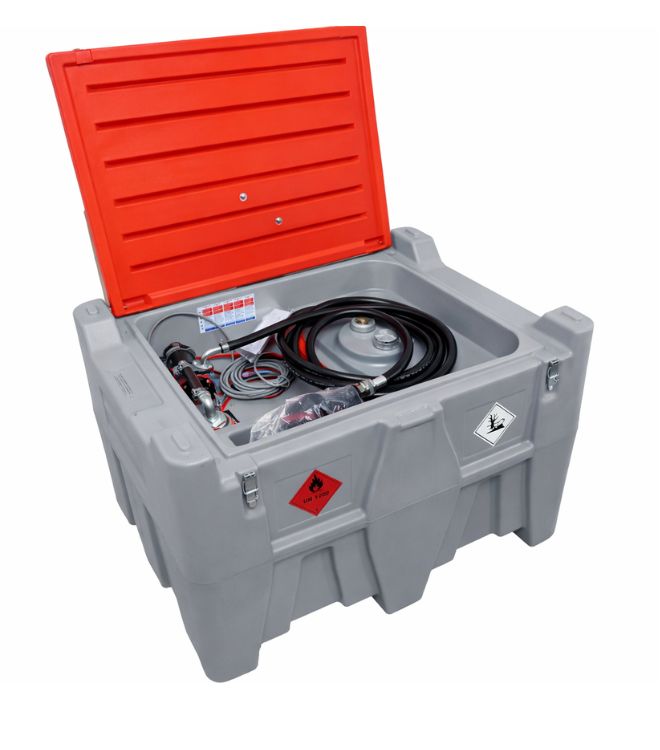 A tartály a 12 V-os, 40 liter/perc teljesítményű szivattyúval együtt gyors, kontrollált és terepen is kényelmes üzemanyag-kiszolgálást biztosít.